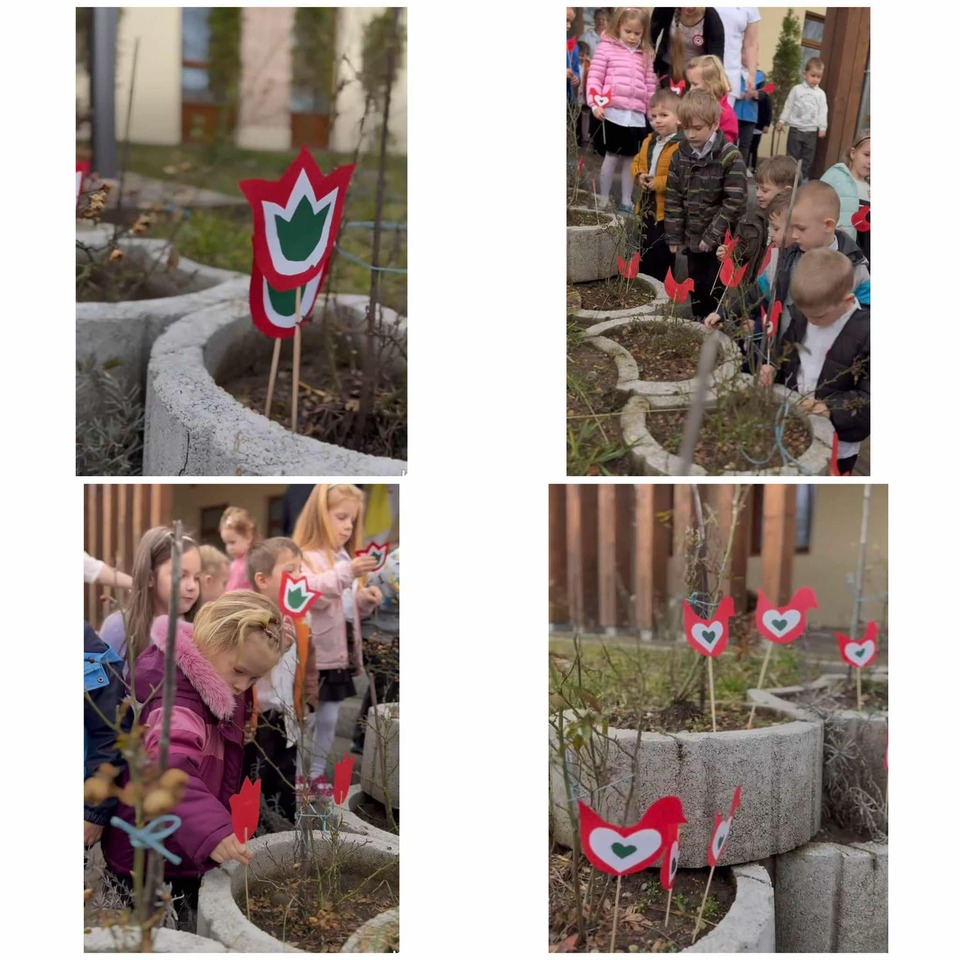 Az ünnepi műsort követően verbunkos táncházzal leptük meg a gyermekeket, majd a  héten készített nemzeti színű alkotásainkat helyeztük el az óvoda bejáratához.